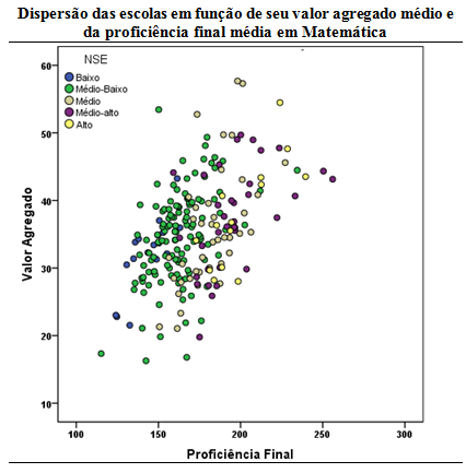 Seguindo a proposta feita pelo National Research Council and National Academy of Education, Dalben (Tese de Doutorado, FE/UNICAMP, 2014) evidencia no gráfico abaixo que as escolas deveriam ser valorizadas pelo quanto elas conseguem agregar na proficiência de seus alunos ao final de um período de escolarização.
