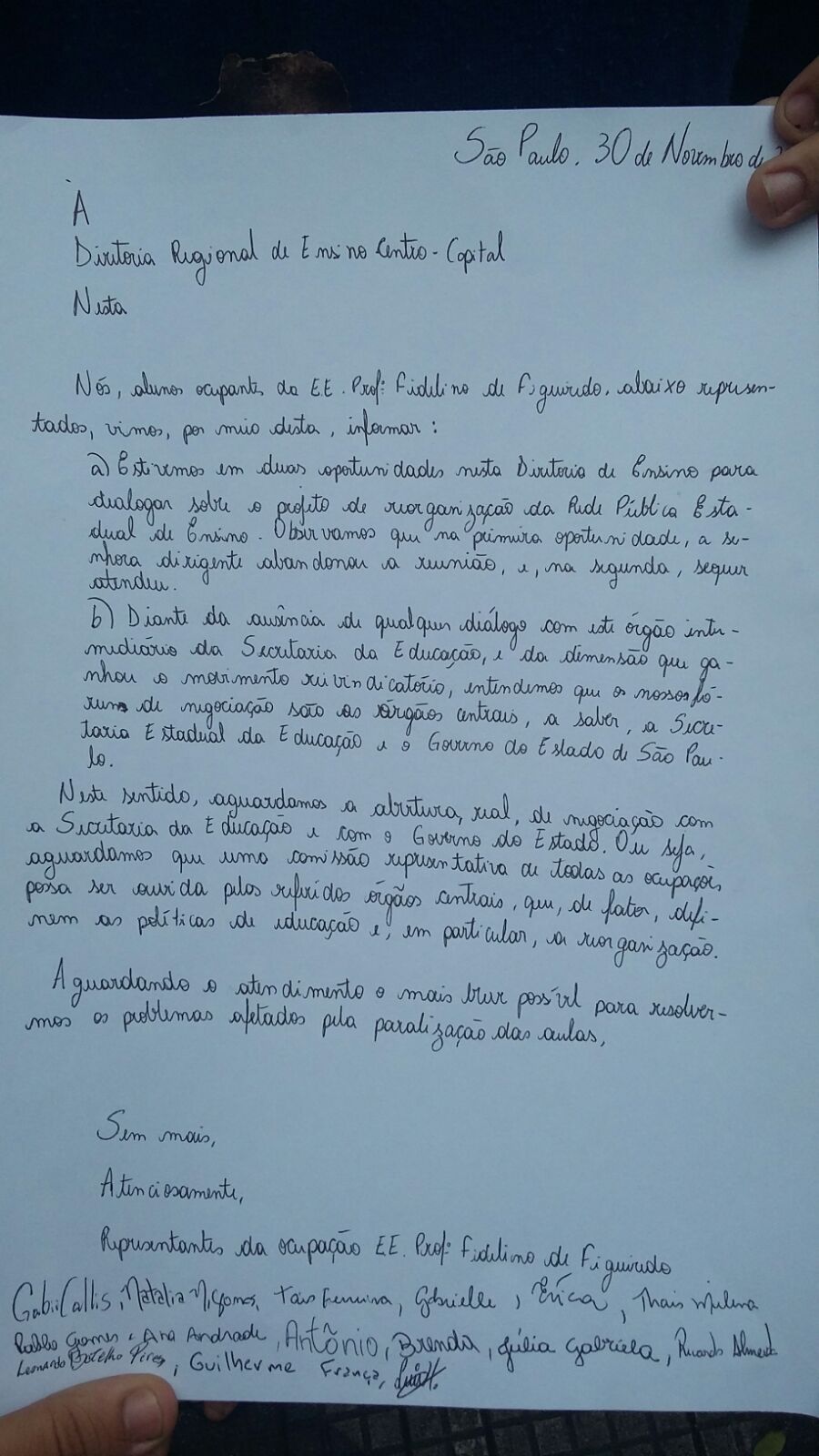 Bem fizeram os estudantes que não caíram no conto das Diretorias de Ensino que fingiram querer diálogo, dando resposta à altura para o governo do Estado. Se de fato Alckmin queria dialogar, é claro que não imporia por decreto a reorganização. O diálogo pregado pelo governo é só em relação a como fazer, ou seja, está disposto a pequenos ajustes. Mas tem que fazer.