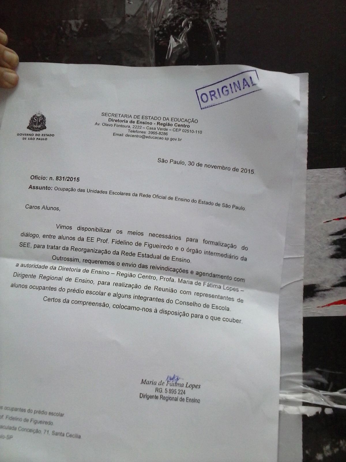 Com 200 escolas ocupadas, o governo do Estado de São Paulo, depois de mascarar o autoritarismo na imposição da reorganização empresarial das escolas, derruba a máscara e publica decreto que impõe a reforma, sem diálogo. Podemos dizer agora que a reforma está sendo imposta por decreto, sob vigilância e força policial.
