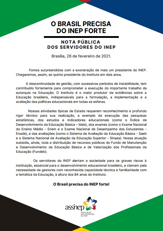 Os servidores do INEP reagiram a esta quinta mudança do presidente do INEP em apenas dois anos, apontando os riscos da falta de continuidade.